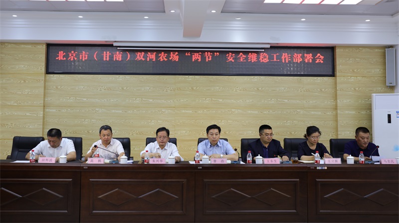 会上,农场副场长高枫宣读了《北京首农食品集团有限公司迎接建国70周年安全生产专项整治行动工作方案》、《北京市(甘南)双河农场迎接建国70周年安全生产专项整治行动工作方案》,对农场“两节”期间安全生产工作进行了安排部署。农场场长助理马忠民传达了集团公司2019年上半年信访维稳工作报告,总结了农场上半年信访维稳工作情况,并对当前农场信访维稳面临的形势和下一阶段重点工作进行了分析和部署。