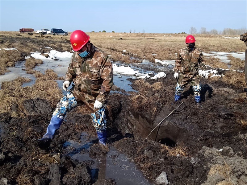 在铺设电缆施工中,受日前暴雪影响,使此次铺设难度增大,800余米的电缆铺设线路均是在雪地淤泥中进行,且搬运和铺设电缆距离长、截面大,路径弯道多、直行距离短,无法使用机械力量,需要员工们一点一点人工铺设。铺设中,工作人员需下到冰冷的水沟里进行铺设,爬上爬下体力消耗非常大,一会儿功夫,每个人的脸上都露出豆大的汗珠,浑身都是泥水,汗水湿透了衣背。