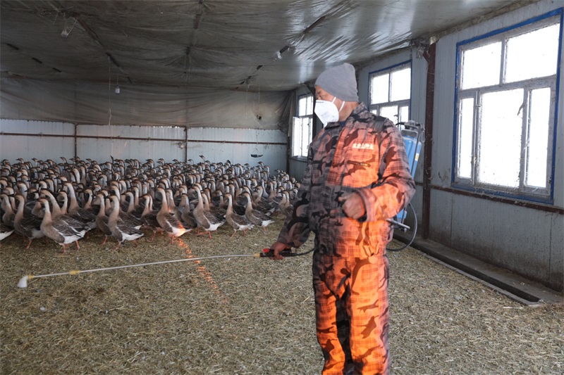 1月23日,李瑞军和妻子一同进驻了养殖基地,担负起基地的全部工作。他按照养殖基地的工作要求,对基地的养殖区和生活区每日坚持进行两次消毒,坚决杜绝外来人员进场,每日按照养殖流程对基地的畜禽进行饲养,除夕夜还在坚持着饲养,一直忙到九点多钟。妻子每天为他做好饭,帮助基地做消毒工作,保障畜禽饲养的顺利进行,一家人默默的奉献着。为了不让公司领导担心,李瑞军每天都向公司汇报基地的情况,“基地情况正常,请领导放心”,就这样的一句话,他和妻子付出了许多心血,牺牲了个人的休息时间,换来了基地的安全。公司也十分关心他们,每隔两天为他们送去简单生活用品,带去公司成员对他们的慰问。