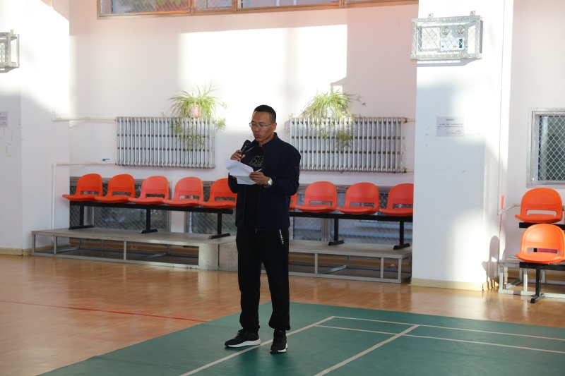 农场副场长黄肖东致开幕词。近年来,双河地区的羽毛球健身运动爱好者的整体水平显著提高,很多职工常年坚持练习,难能可贵。此次比赛将是双河羽毛球运动水平的一次精彩展示,也是深入推动全民健身运动的一个靓丽剪影,更是农场干部职工精神风貌的一次激情呈现。希望全体运动员以本届比赛为契机,锻炼体魄,交流学习,增进友谊,为促进双河羽毛球运动普及作出积极贡献。