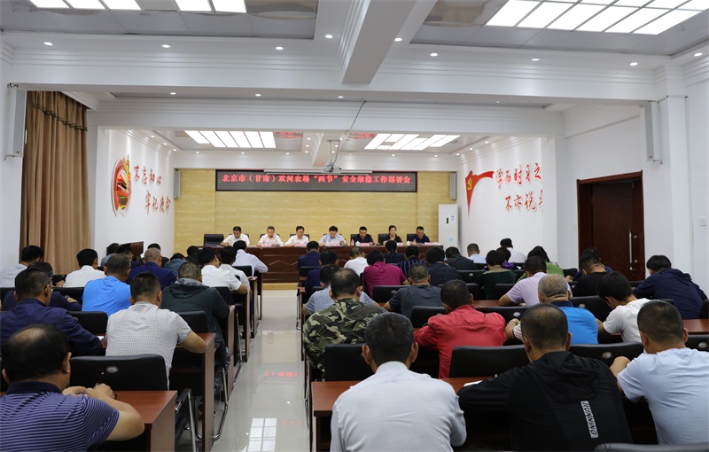 会上,农场副场长高枫宣读了《北京首农食品集团有限公司迎接建国70周年安全生产专项整治行动工作方案》、《北京市(甘南)双河农场迎接建国70周年安全生产专项整治行动工作方案》,对农场“两节”期间安全生产工作进行了安排部署。农场场长助理马忠民传达了集团公司2019年上半年信访维稳工作报告,总结了农场上半年信访维稳工作情况,并对当前农场信访维稳面临的形势和下一阶段重点工作进行了分析和部署。
