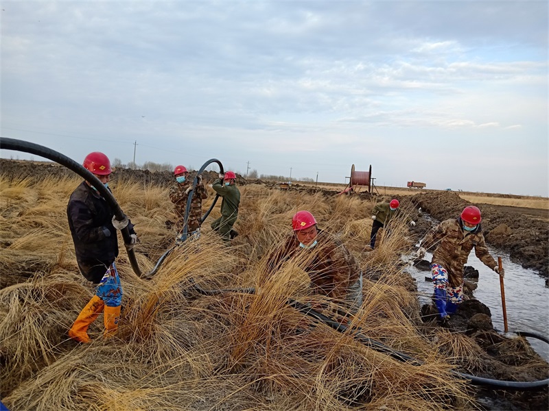 在全体员工艰苦努力奋战下,经过6个多小时艰难施工,全部完成电缆铺设任务,确保万头肉牛养殖基地如期进行,为项目建设提供安全、及时、可靠的电力保障。