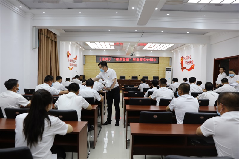 7月1日上午,农场组织开展主题党日活动,庆祝建党99周年。此次活动以各党支部委员围绕《中国共产党支部工作条例(试行)》《中国共产党国有企业基层组织工作条例(试行)》知识答题形式举行,试题以两个《条例》为重点,采取集中闭卷笔试答题方式,推动有关内容落地生根。