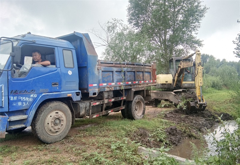 十公司管理人员立即上报农场防汛指挥部。指挥部及时协调水利公路管理公司调运2台挖掘机和运输车,立即赶往重点部位开展排水作业,并发动辖区党员职工群众开展到田间地头,疏通沟渠加快排水,公司党员干部冲在前、干在先、当表率,充分发挥党员先锋模范作用,顶着炎炎烈日,争分夺秒地清理渠道内的杂草、淤泥和垃圾,切实做到“我为群众办实事”。