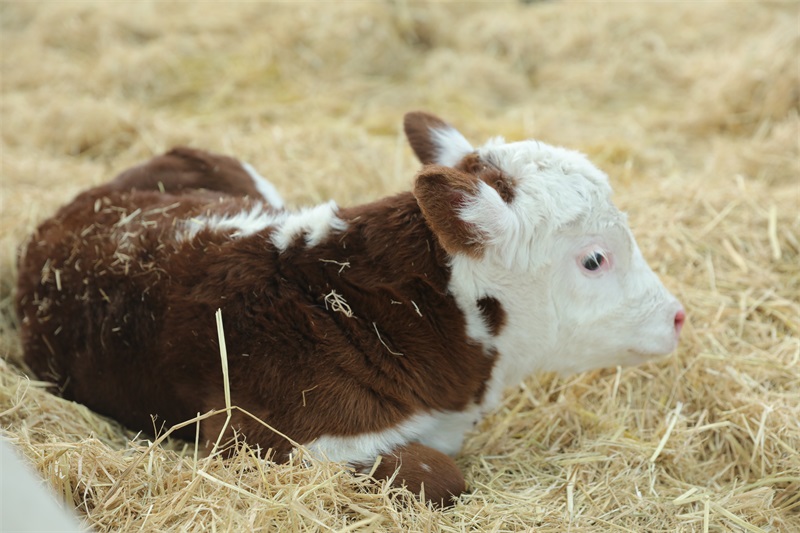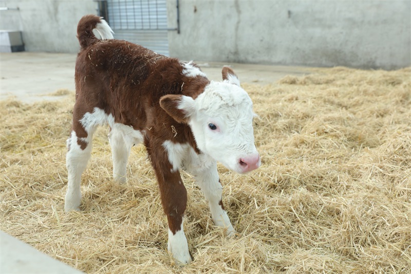 牛年立冬后的第一周,大雪天气转晴过后,农场引进的第一批进口乌拉圭海福特怀孕母牛200头中一头肉牛于11月13日清晨顺利完成产犊,产下了牛年的第一头红白花“小金牛”,为农场肉牛养殖开了一个好兆头。