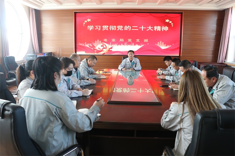 电业局党支部带领全体党员深入学习了党的二十大报告。党的二十大报告指出“要实现好、维护好、发展好最广大人民根本利益;要健全基本公共服务体系,提高公共服务水平,增强均衡性和可及性,扎实推进共同富裕。”这对供电服务工作提出更高要求。今后电业局将切实把党的二十大精神贯彻落实到工作中,推动各项工作开展,努力为农场电力保障提供更好的服务、做农场职工群众最放心的“电业人”。