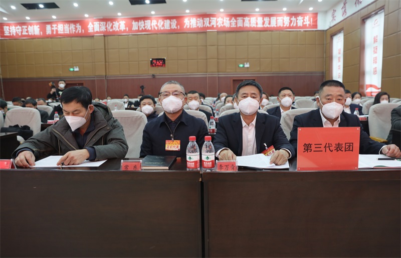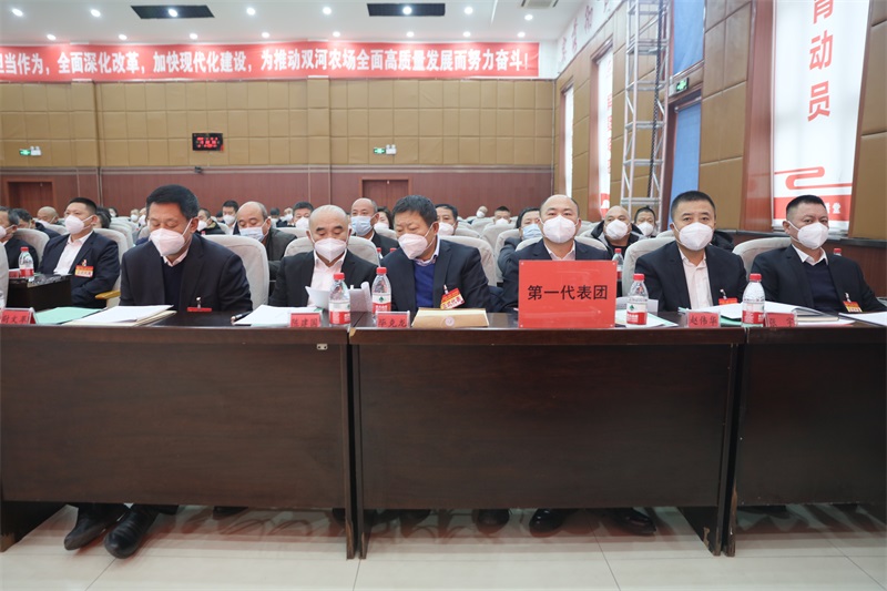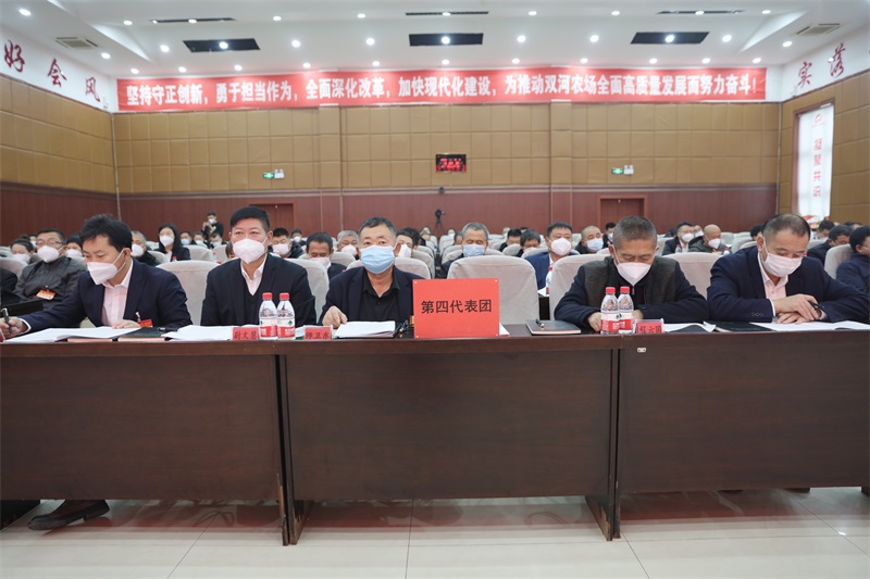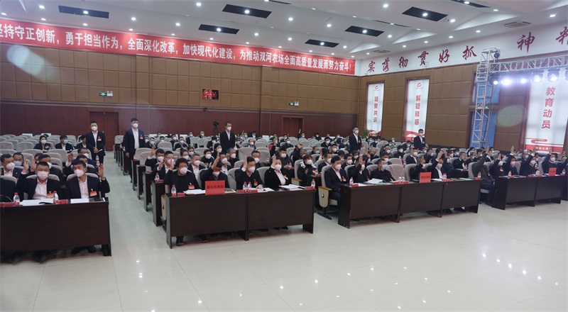大会在雄壮的国歌声中拉开序幕。农场党委书记、场长曾浩作了题为《坚持守正创新 勇于担当作为 全面深化改革 加快现代化建设 为推动双河农场全面高质量发展而努力奋斗》的工作报告。