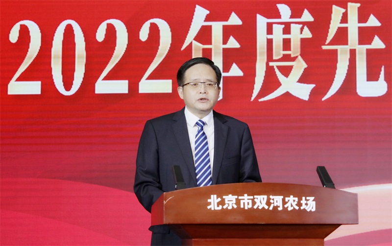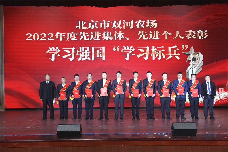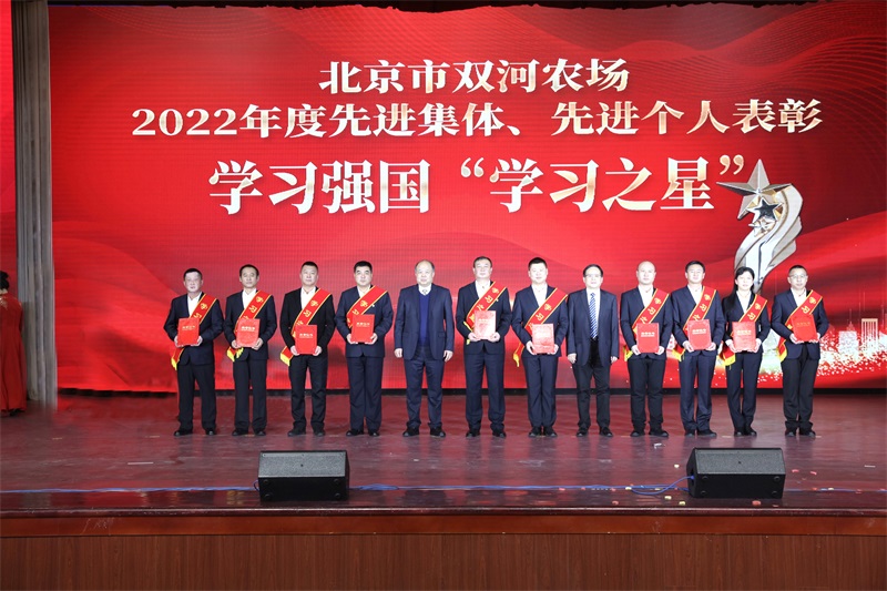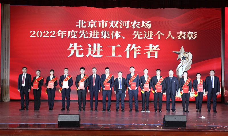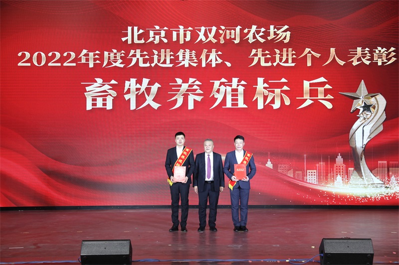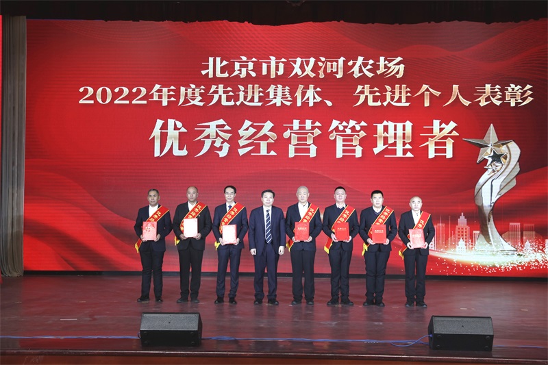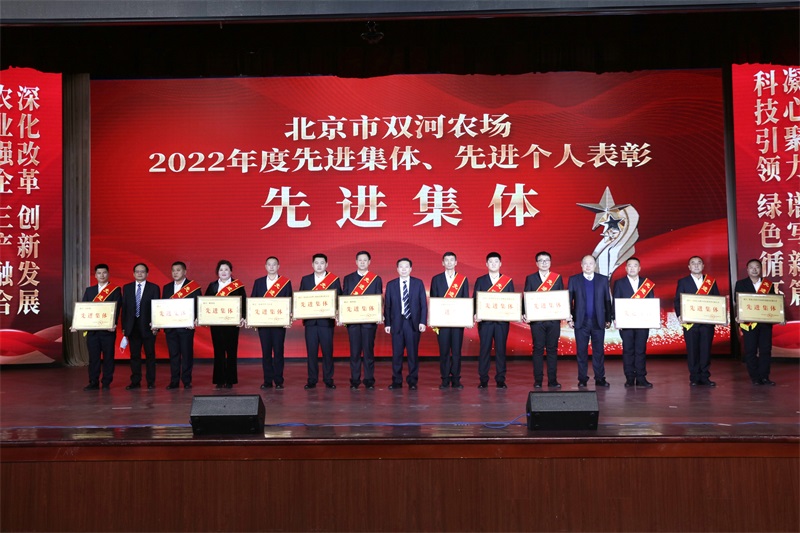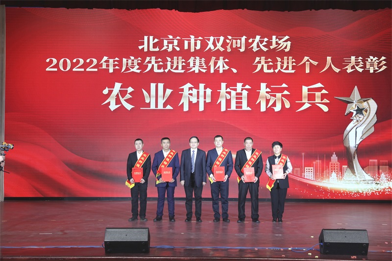 在表彰大会上,农场副场长朱兴华宣读了《北京市双河农场关于表彰2022年度先进集体和先进个人的决定》。优秀职工代表农业经营七公司齐静波,获得农场2022年度农业战线先进集体代表农业经营六公司经理宋志刚,优秀经营管理者代表甘南县双兴牧业有限公司经理王永江,先进工作者代表农业办公室主管周俊分别做表态发言。