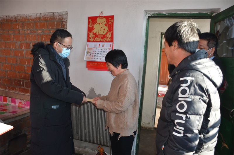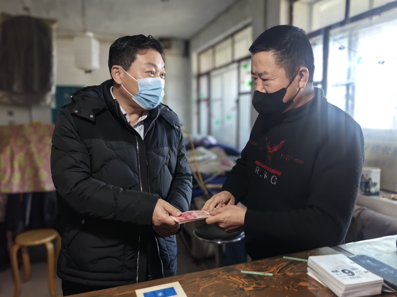 曾浩书记在慰问困难党员时,将慰问金和慰问品送到职工杨弘弢手中,促膝谈心,问寒问暖,详细了解其家庭生活、身体状况和生活所需,叮嘱一定要注意防寒保暖,保重身体,并鼓励他要树立信心,乐观面对生活和工作中的困难,并祝愿他度过一个平安祥和的新春佳节。