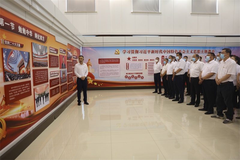 宣誓大厅内,全体人员整齐列队,面对党旗举起右拳集体宣誓,重温入党时的庄严承诺。