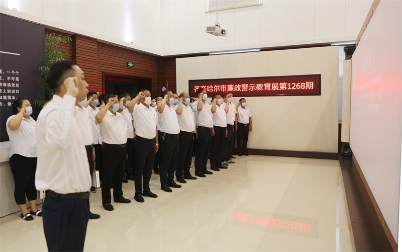 为持续巩固和深化学习贯彻习近平新时代中国特色社会主义思想主题教育成果,进一步增强农场党员领导干部拒腐防变意识,营造风清气正的良好政治生态,按照农场党委全面从严治党工作部署以及2023年度培训计划安排,农场纪委于7月27日上午组织农场领导班子成员、纪委委员、专职纪检干部、机关部门负责人、场属单位党政正职及基层党支部副书记共计51名党员领导干部赴黑龙江廉政警示教育齐齐哈尔基地接受警示教育。