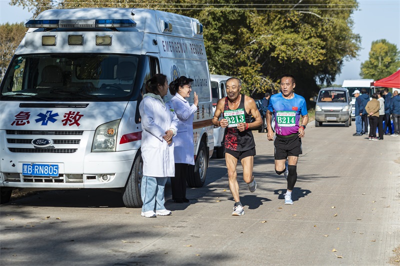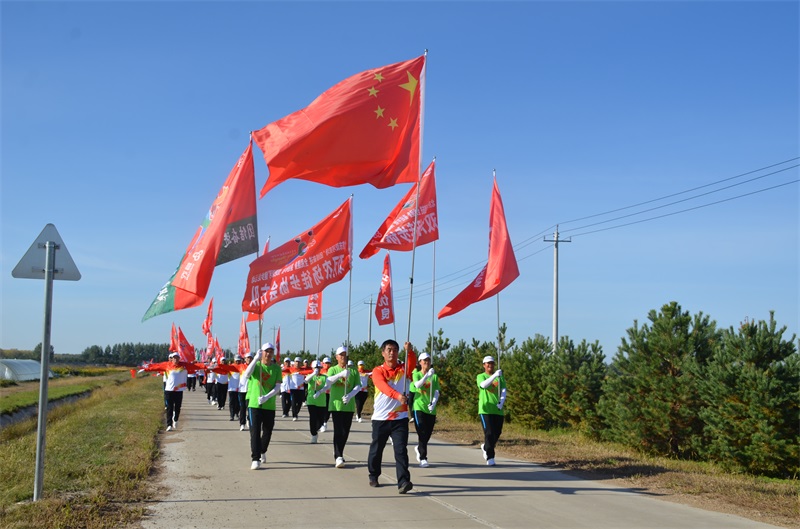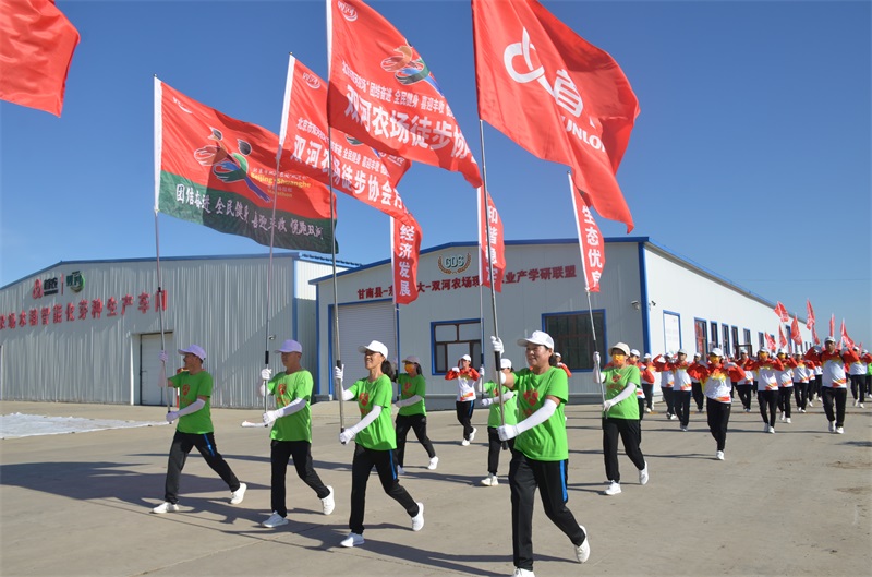 农场党委书记、场长丁守林为健步走活动授旗。在他铿锵有力的声音下,宣布双河农场第六届“双河杯”半程马拉松赛暨健步走活动开幕。丁守林书记与嘉宾共同为比赛鸣枪发令,参赛运动员们如离弦之箭,冲出起跑线,选手们精神饱满、热情高涨,在金秋风景如画的赛道尽情奔跑,与沿途的农业风光交相辉映,形成一道亮丽的全民健身风景线。