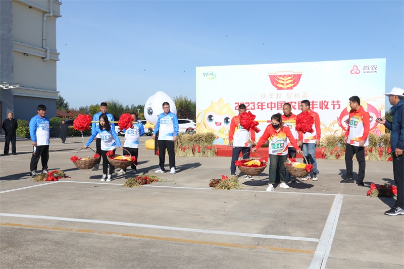 金秋时节,五谷丰登、瓜果飘香。为庆祝第六个“中国农民丰收节”,感受秋日美好,共享丰收喜悦,本次活动增设了丰收趣味比赛环节,比赛开始前由农场党委书记、场长丁守林和甘南县政协主席杨国军为“丰收运粮”道具丰收筐添上满载丰收的作物,寓意着今年又是一个丰收年。活动通过设置丰收运粮、春种秋收、夹豆快跑、甜蜜流露四个比赛项目,以农作物为道具,突出了丰收、趣味、团结主题,将农业种植技能与游戏竞技相结合,让职工群众以自己熟悉的方式感知生活的美好,在竞赛中庆丰收,充分展示出大家积极向上的精神风貌。