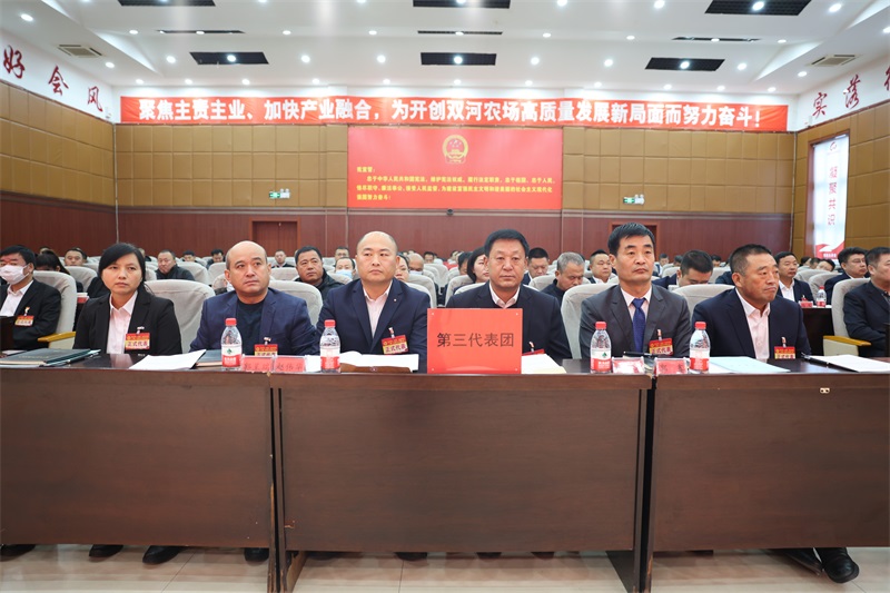 大会在雄壮的国歌声中拉开序幕。农场党委书记、场长丁守林作题为《聚焦主责主业 加快产业融合 为开创双河农场高质量发展新局面而努力奋斗》的工作报告。