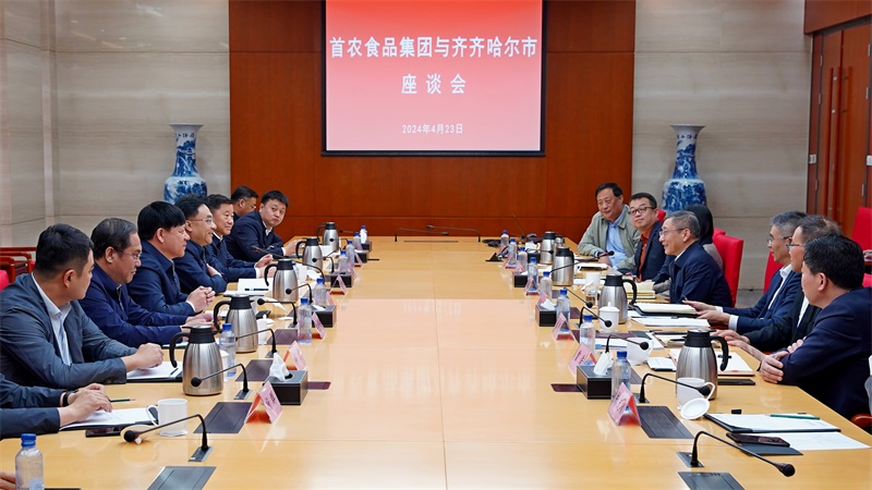 4月23日,齐齐哈尔市委书记沈宏宇带队到首农食品集团考察座谈。集团领导薛刚、袁浩宗、王钤热情接待。