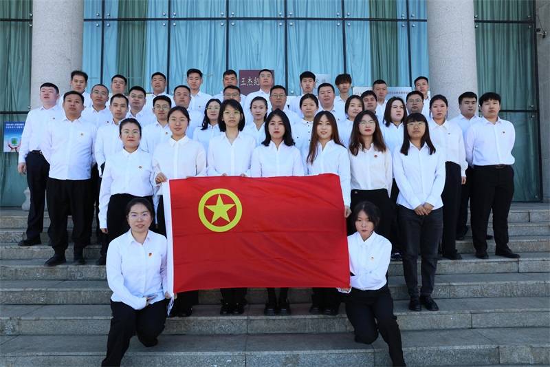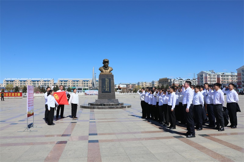 在王杰广场纪念碑前,农场团委副书记杜峰带领全体团员青年面对鲜红的团旗,举起右拳,重温入团誓词,以实际行动表达听党话、感党恩、跟党走的决心和信心。