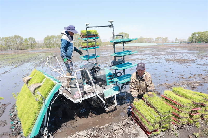 与此同时,在农业经营八公司,一台装有北斗卫星导航系统的高速插秧机,正在忙碌的穿梭于田间完成插秧作业,仅一个小时,一块格田已被染上一片新绿。“立夏过后,天气越来越缓和,趁着气温回升,我家抢前抓早开始进行水稻插秧,同时也时刻关注天气变化,采取多种措施提高地温,防止插到本田的稻苗发生冻害。”八公司水稻种植户吴洪凯介绍到。