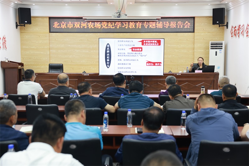 为深入学习贯彻落实习近平总书记关于党纪学习教育的重要讲话和指示批示精神。全面对标落实党中央、北京市委、集团公司党委有关要求,深刻把握党纪学习教育的出发点和落脚点,进一步深化对党纪规定的理解和把握,促进党员领导干部自觉用党规党纪校正思想和行动,不断提升依规依纪依法履职能力和水平,为农场持续高质量发展提供坚强有力的保障。6月3日上午,农场以党委理论学习中心组学习扩大会的形式,组织召开了党纪学习教育专题辅导报告会。特别邀请齐齐哈尔市委党校校务委员、教育长张丽丽教授,以深入学习《中国共产党纪律处分条例》为题,为农场党员领导干部进行了专题辅导。