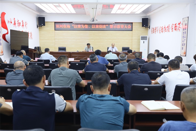 8月8日下午,双河农场召开“以案为鉴、以案促改”警示教育大会。农场领导班子成员、机关各部室负责人及场属单位党政正职参加会议。会议由农场党委书记、场长丁守林主持。