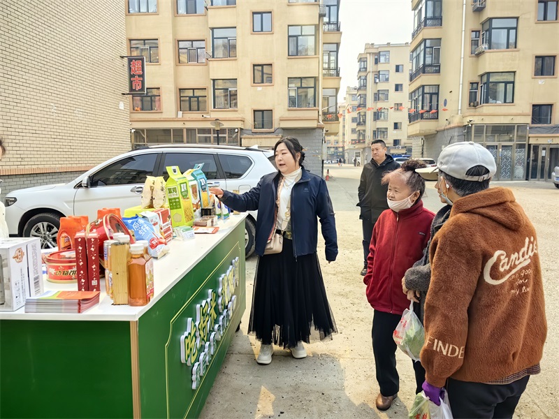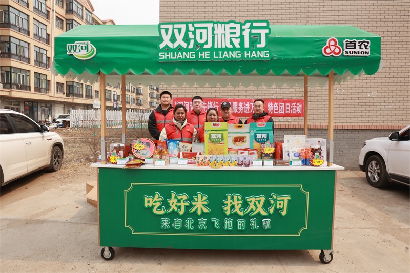 活动中,农场的青年员工走进甘南县龙福嘉园小区,将“双河粮行”的优质农产品送到居民家门口。在精心布置的展车上,“双河粮行”丰富的大米品类琳琅满目,配上新鲜蒸煮好的大米饭,吸引了不少居民前来问询和品尝,青年们耐心细致为居民讲解双河大米的种植方式和品质优势,现场气氛热烈融洽。同时,活动现场还展销了“双河粮行”经营的北京“名优特”食品,让社区居民在家门口就能体验到北京热销产品的独特魅力。